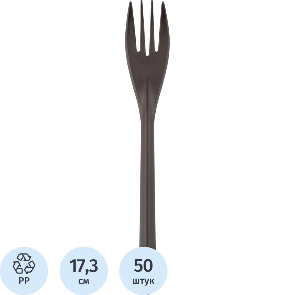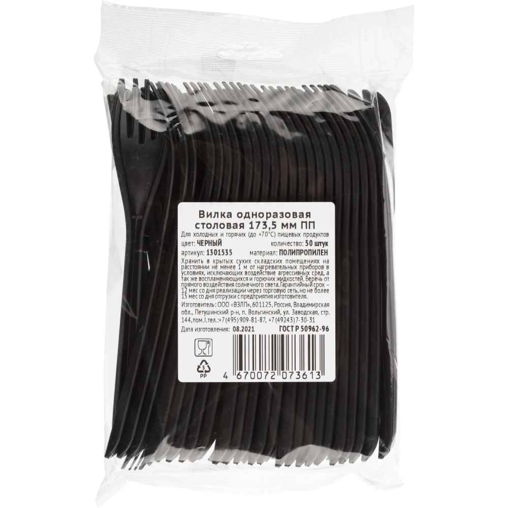 Вилка одноразовая столовая 173,5мм, черная, ПП, 50шт/уп(4032)