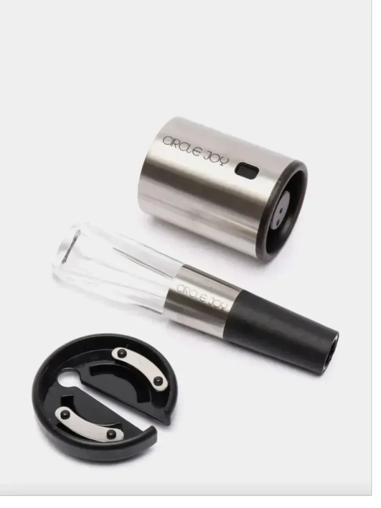Винный набор Xiaomi Circle Joy Electric Set 4-in-1 (CJ-TZ02) В состав комплекта входят четыре специально отобранных предмета, которые помогут открыть, разлить, аэрировать и сохранить вино. Набор поставляется в специальной тщательно продуманной коробке «крышка-дно», которая служит прекрасной подарочной упаковкой. Набор станет качественным и элегантным подарком по любому поводу.Спустя десять с лишним лет, посвященных технологическому улучшению электронных штопоров, и миллионов пробных экземпляров нашим инженерам удалось значительно повысить точность внутренней структуры штопора и свести диапазон погрешности до 10 мкм. Это позволило в полной мере оценить высокие возможности прибора. Одной зарядки достаточно, чтобы открыть подряд 120 бутылок. За весь срок эксплуатации штопор справится с 2000 бутылок.После нескольких десятилетий технологических разработок мы создали ряд запатентованных технологий, которые называются «Комплект структурных улучшений штопора», и применили их для производства данного продукта. Они значительно повысили точность центровки стержня по отношению к пробке и плавность выкручивания, тем самым полностью реализовав мгновенное открытие бутылки за несколько секунд. Работа электрического штопора стабильна и эффективна.Мы провели множественные тесты и испытания, чтобы усовершенствовать внутреннюю структуру пробки и повысить ее точность. Теперь пробка долгое время поддерживает вакуум без доступа воздуха. С пробкой Circle Joy степень вакуума поддерживается на уровне 0.038 Mpa, что способствует эффективному сохранению свежести напитка. Даже через семь дней аромат и вкус вина останутся такими же свежими и насыщенными.