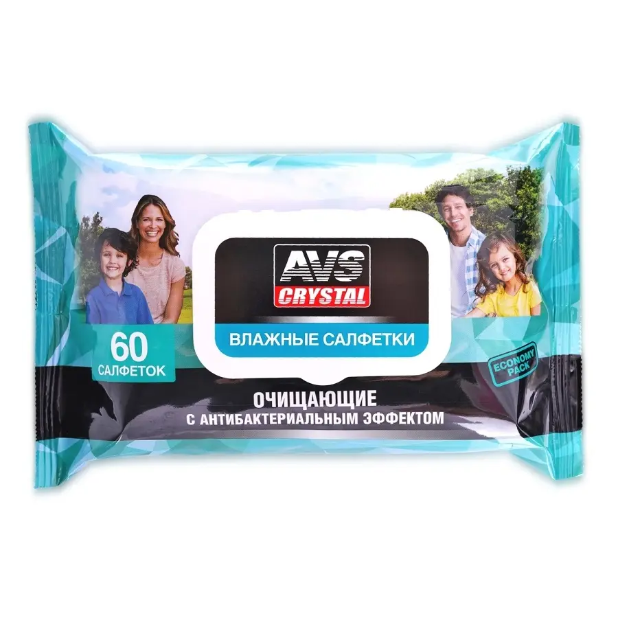 Влажные салфетки "Очищающие с антибактериальным эффектом" (пластиковый клапан) 60шт AVS AVK-213