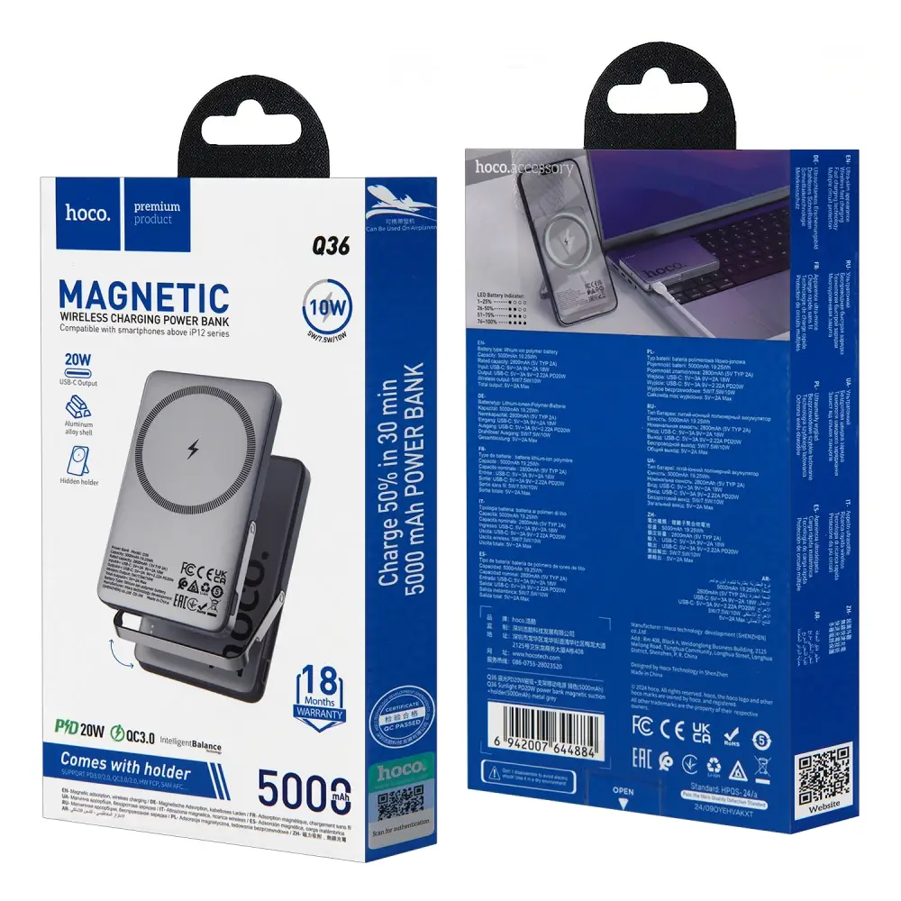 Внешний аккумулятор 5000 mAh с беспроводной зарядкой Q36 HOCO серый