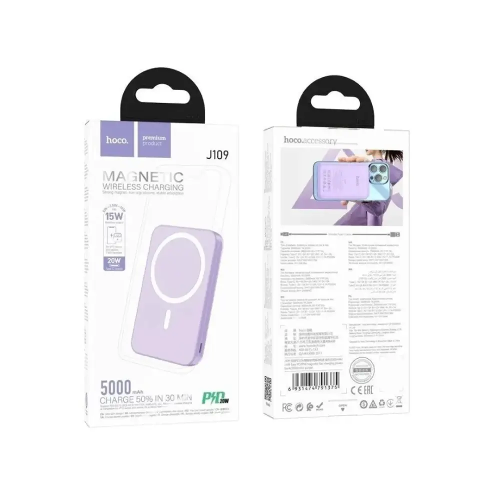 MagSafe Hoco j109. Портативный аккумулятор Hoco J109 MagSafe станет отличным дополнением для вашего iPhone, благодаря которому вы дольше сможете пользоваться всеми его возможностями без ограничений. Данная модель источника питания обладает емкостью 5000 мА*ч, благодаря чему заряда вашего смартфона хватит на значительно большее время. Для дополнительного удобства устройство поддерживает технологию быстрой беспроводной зарядки за счет мощности в 15 Вт. А напрямую через провод выдает 20Вт. Портативный аккумулятор Hoco J109 MagSafe также отличается компактными размерами и небольшим весом, что позволит с легкостью установить устройство на заднюю панель вашего смартфона. Модель выполнена в корпусе из качественного и приятного на ощупь пластика, а также отличается лаконичным дизайном. Для зарядки портативного аккумулятора используется фирменный коннектор Lightning. Устройство поставляется в фирменной упаковке. Перед первым употреблением устройство желательно полностью зарядить! Время первой зарядки будет около 2 часов. При выборе устройства следует понимать, что данный девайс был создан инженерами для экстренной дополнительной подзарядки телефона в пути без розеток и провода на недолгий промежуток времени. Это устройство позволит зарядить стандартный телефон полностью, версию "макс" - не менее 80%. Встроенные магниты этой версии устройства сильны. Емкость, мА•ч5000 Выходное напряжение5 В НазначениеДля мобильного телефона Совместимые устройства: Список совместимых устройств с анимацией MagSafe: Apple Iphone 12 mini Apple Iphone 12 Apple Iphone 12 pro Apple Iphone 12 pro max Apple Iphone 13 mini Apple Iphone 13 Apple Iphone 13 pro Apple iPhone 14 Apple iPhone 14 max Apple iPhone 14 pro Apple iPhone 14 pro max Apple Iphone 13 pro max Со специальным чехлом, поддерживающим функцию MagSafe, будет работать так же корректно, но без фирменной анимации, на iPhone моделей iPhone 8 iPhone 8 plus iPhone X iPhone Xs iPhone Xs MAX iPhone XR iPhone 11 iPhone 11 PRO iPhone 11 PRO MAX. Химический тип -Li-pol. Быстрая зарядка- Да. Особенности- быстрая зарядка Quick Charge. Основной материал корпуса- пластик. Длина, мм- 150. Ширина, мм- 80. Высота, мм -20. Вес товара, г – 150. Упаковка- коробка.