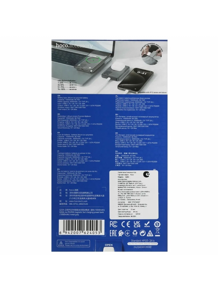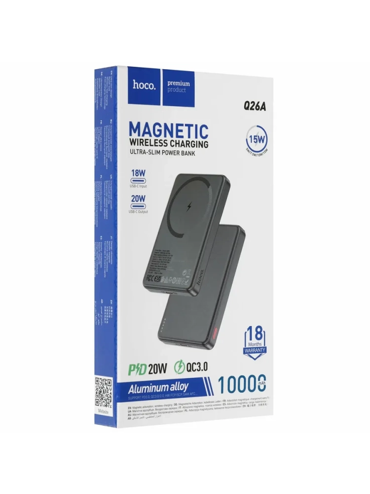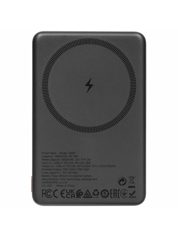 Внешний аккумулятор Hoco Q26A, 10000 mAh с беспроводной зарядкой