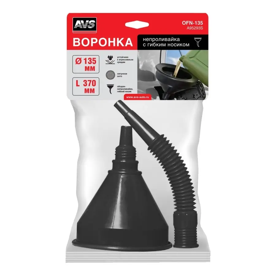 Воронка непроливайка с гибким носиком AVS OFN-135 (D-135мм, L-370мм)(латун.сетч.фильтр)