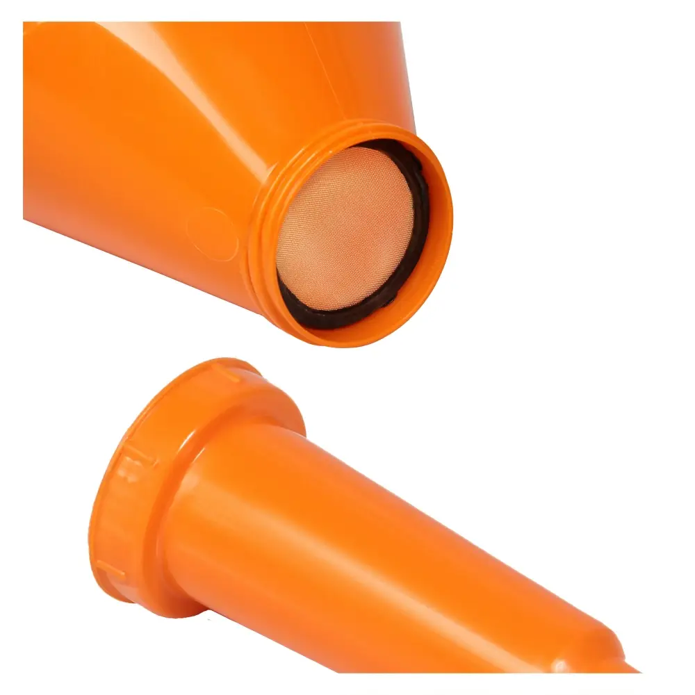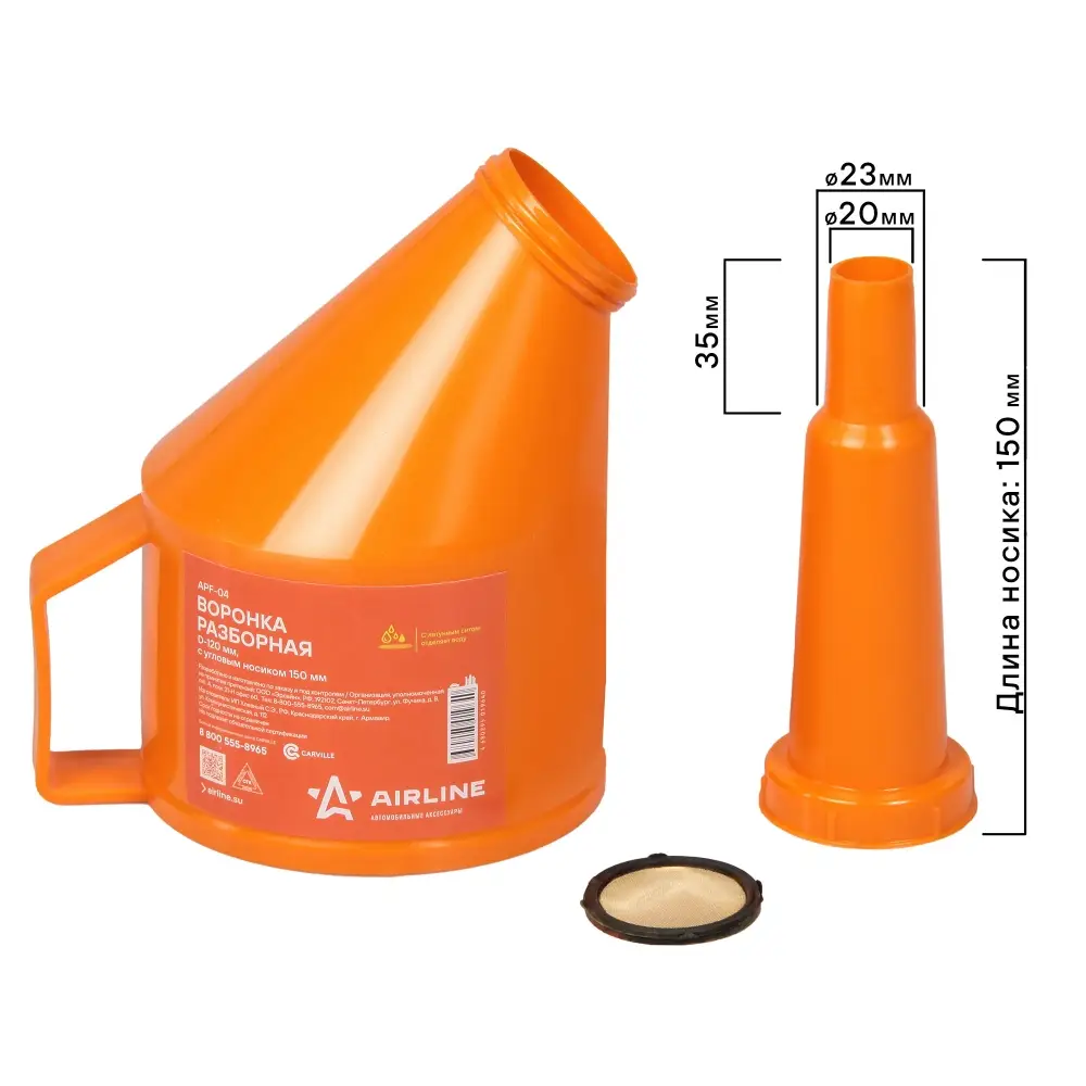 Воронка поможет аккуратно произвести процесс переливания жидкостей. Разборная воронка имеет откручивающийся угловой носик, который делает заправку автомобиля максимально удобной. Для более комфортной работы с воронкой на основании изделия расположена пластиковая ручка. Размер воронки составляет 120*150 мм. Воронка укомплектована латунной специальной мелкоячеистой сеткой для фильтрации мусора при переливании.