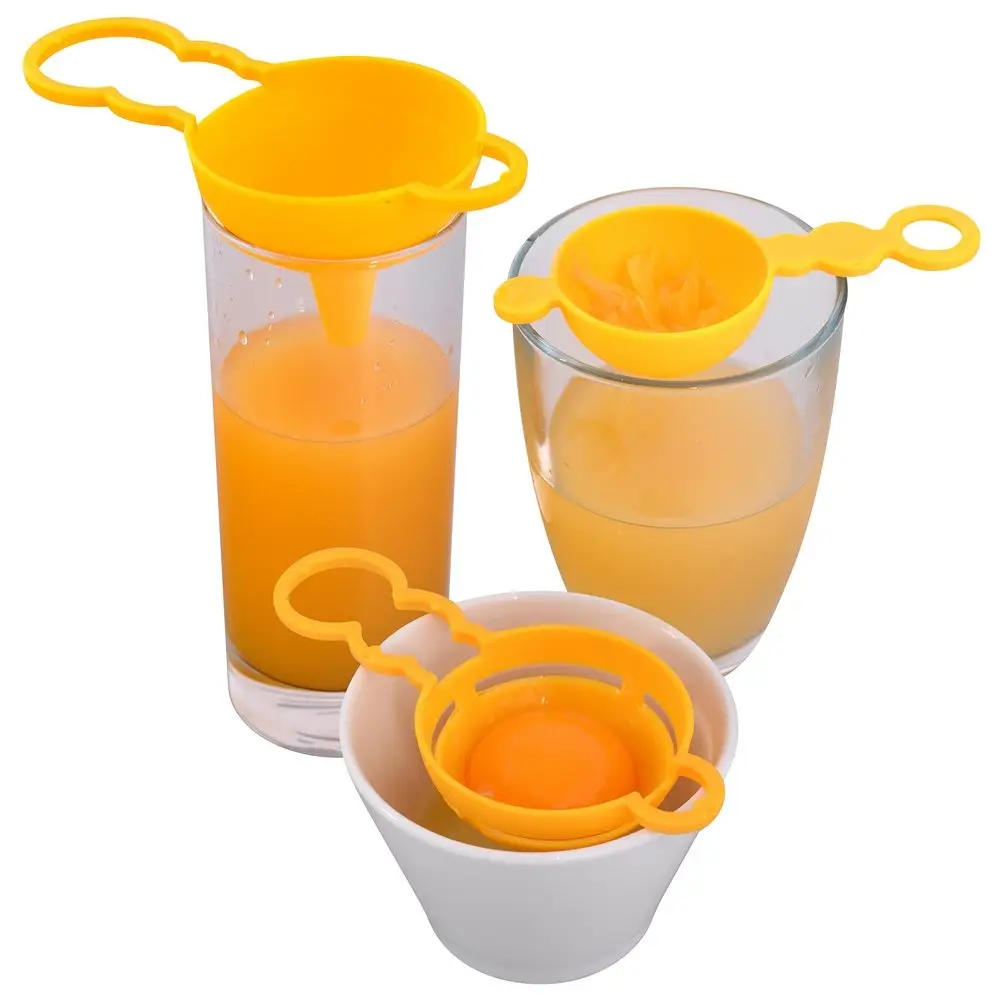 Такой универсальный набор пригодится на любой кухне. С его помощью вы сможете перелить жидкость в сосуд с узким горлышком, отделять яичный белок от желтка, просеять сахарную пудру или какао для десерта. Набор компактен и удобен в хранении, так как изделия укладываются друг в друга и не занимают много места. Благодаря имеющемуся отверстию в ручке, набор можно подвесить для просушки и хранения. Изготовлено: пластмасса (полипропилен). Размер: воронка 14х7х5,5 см. сепаратор 13х6х3 см. сито 12,5х5,5х2,5 см.
