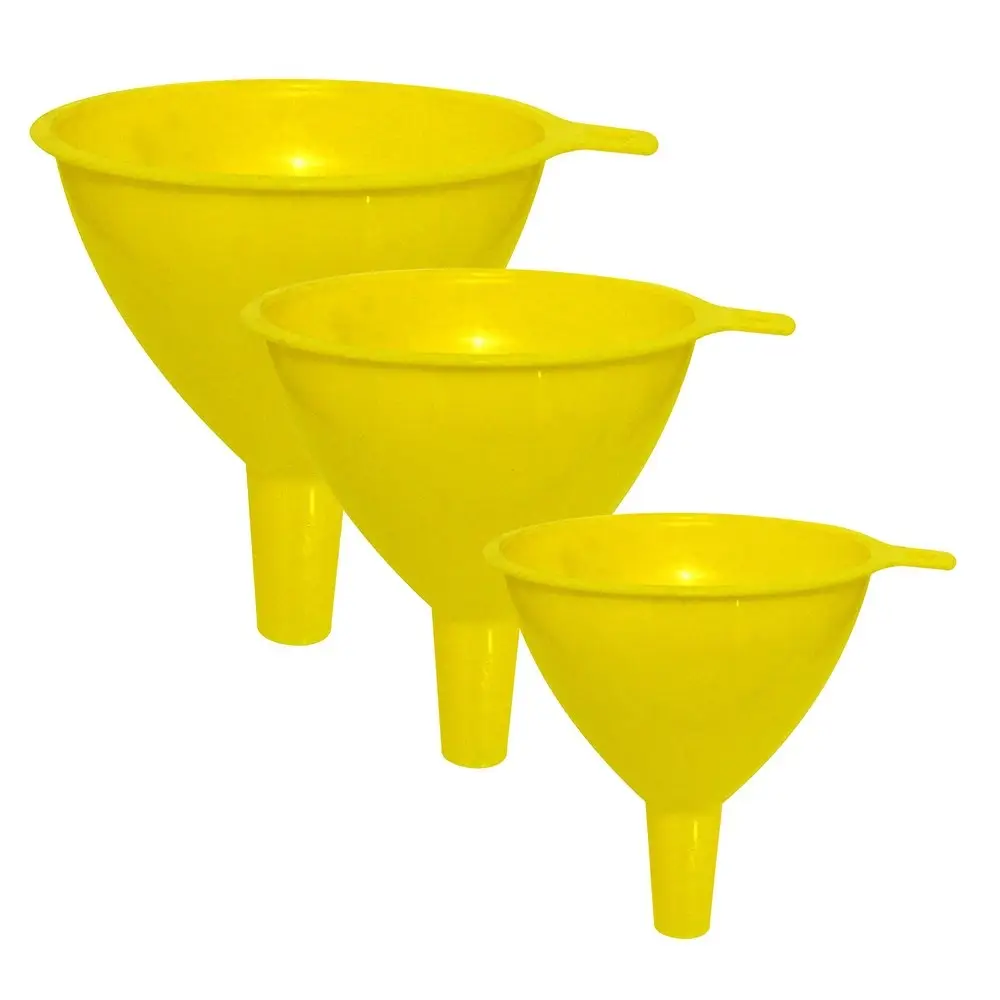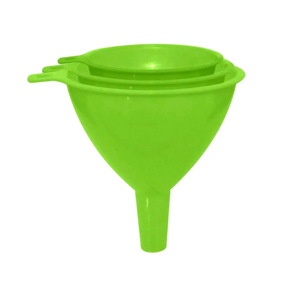 В комплект входит 3 воронки, диаметр 6,7 и см, выполненные в классическом дизайне, небольшая ручка предусмотрена для удобства использования и хранения. Воронки разных размеров складываются одна в другую и занимают мало места. Перед и после использования промойте с губкой и моющими средствами. Изготовлено из пластмассы (полипропилен).