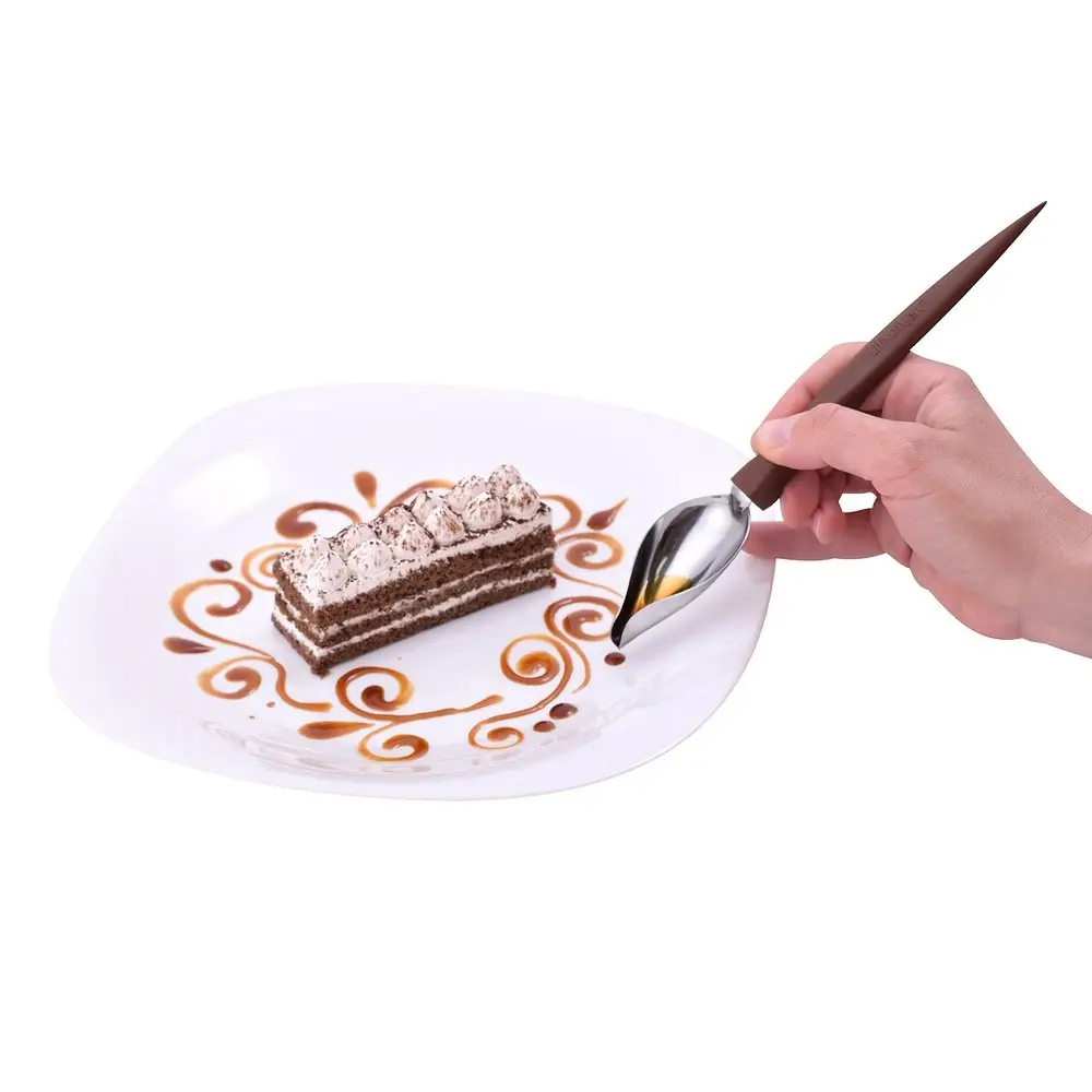 Декоратор-перо поможет красиво оформить блюда и кондитерские изделия. С помощью декоратора вы можете нарисовать линии, фигуры, узоры и другие элементы декора на тортах, пирожных, тарелках. Для рисования можно использовать соусы, шоколадные и фруктовые сиропы. Набор может стать хорошим подарком для любителей готовить и украшать блюда. Подходит как для любителей, так и профессионалов. После применения рекомендуется мыть мягкой щеткой с использованием жидких моющих средств. Хранить в сухом месте. Изготовлено: рабочая часть из коррозионностойкой (нержавеющей) стали, ручка из пластмассы (полипропилен). Длина 19 см и 23 см.