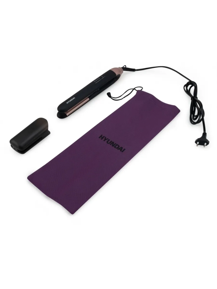 Выпрямитель Hyundai H-HS1272 40Вт черный макс.темп.:200С покрытие:керамико-турмалиновое, автоматическое отключение, настройка температуры, индикатор включения/выключения, индикатор готовности к работе, чехол, петля для подвешивания, плавающие пластины, фиксация в закрытом виде, шарнирное крепление шнура.