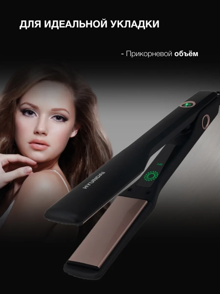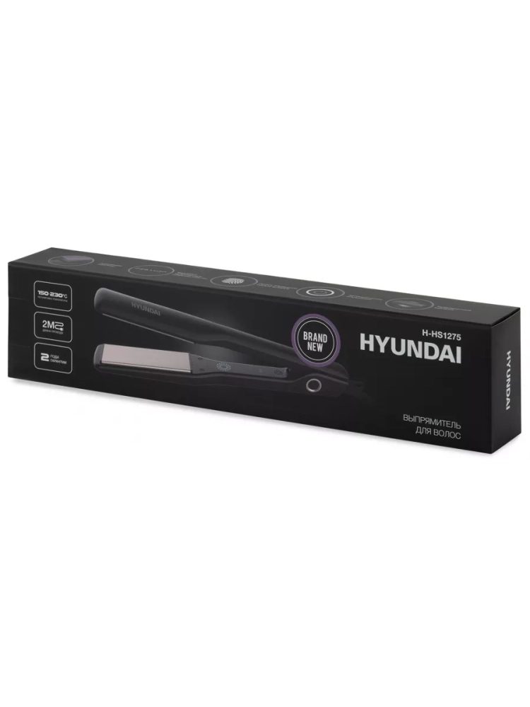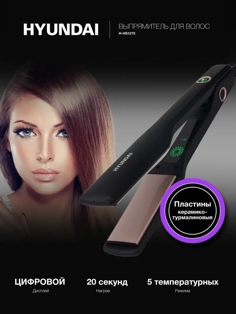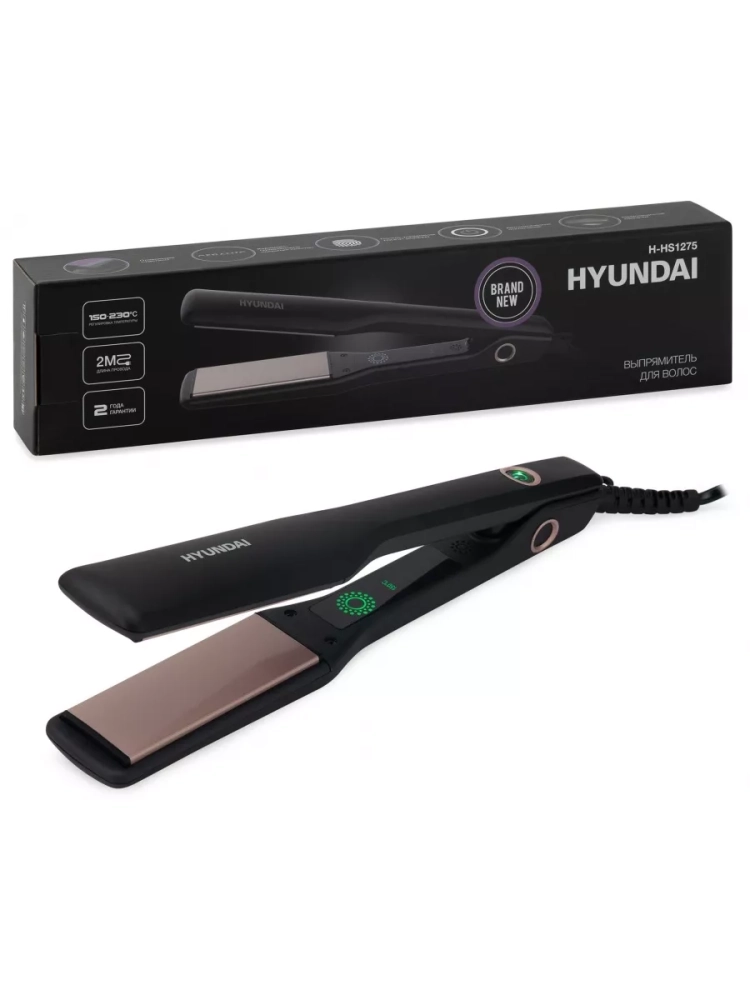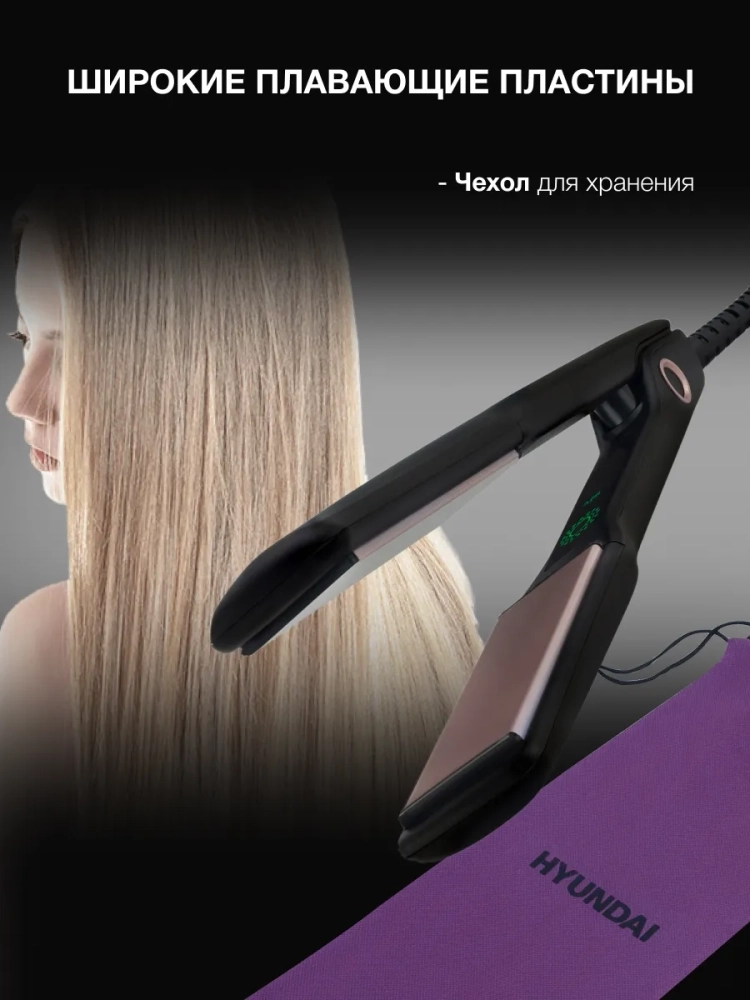 Выпрямитель Hyundai H-HS1275 50Вт черный макс.темп.:230С покрытие:керамико-турмалиновое,петля для подвешивания, плавающие пластины, шарнирное крепление шнура, автоматическое отключение, настройка температуры, индикатор включения/выключения, чехол.