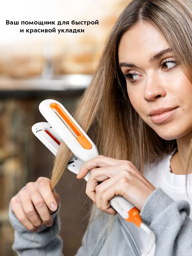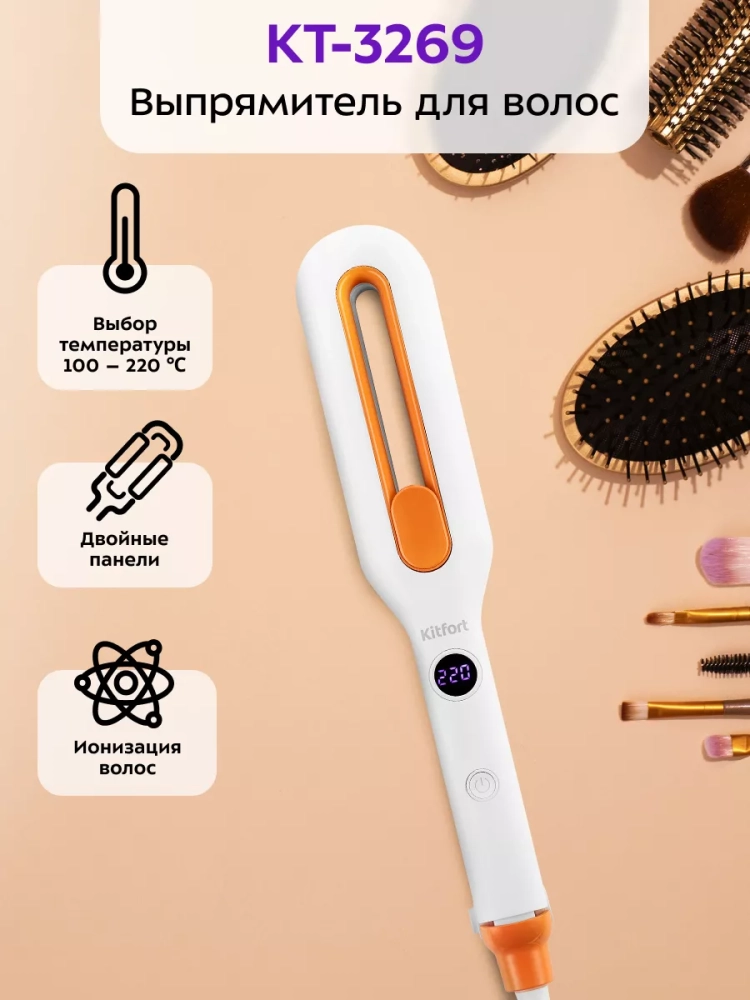 Выпрямитель для волос Kitfort KT-3269 позволит быстро выпрямить волосы и сделать красивую укладку. В отличие от большинства выпрямителей для волос КТ-3269 имеет две пары нагреваемых пластин. Благодаря такой конструкции время укладка волос сокращается. Вам не придется проводить по пряди дважды, чтобы добиться идеальной гладкости: первая пара пластин выпрямляет локоны, а вторая — закрепляет результат и сглаживает те места, которые не были выпрямлены первой парой пластин.