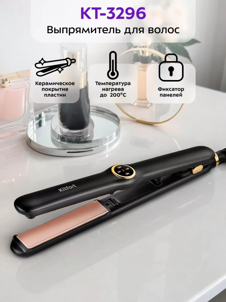 Выпрямитель для волос Kitfort КТ-3296 позволит быстро выпрямить волосы и сделать красивую укладку. Керамическое покрытие нагреваемых пластин бережно выравнивает структуру волос, делая их гладкими и блестящими, а также снимает статическое электричество.