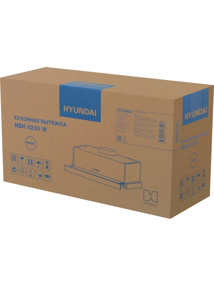 Встраиваемая вытяжка Hyundai HBH 6230 W белый, количество двигателей: 1, режим работы: отвод/циркуляция, кулисные переключатели управление, алюминиевый жироулавливающий фильтр