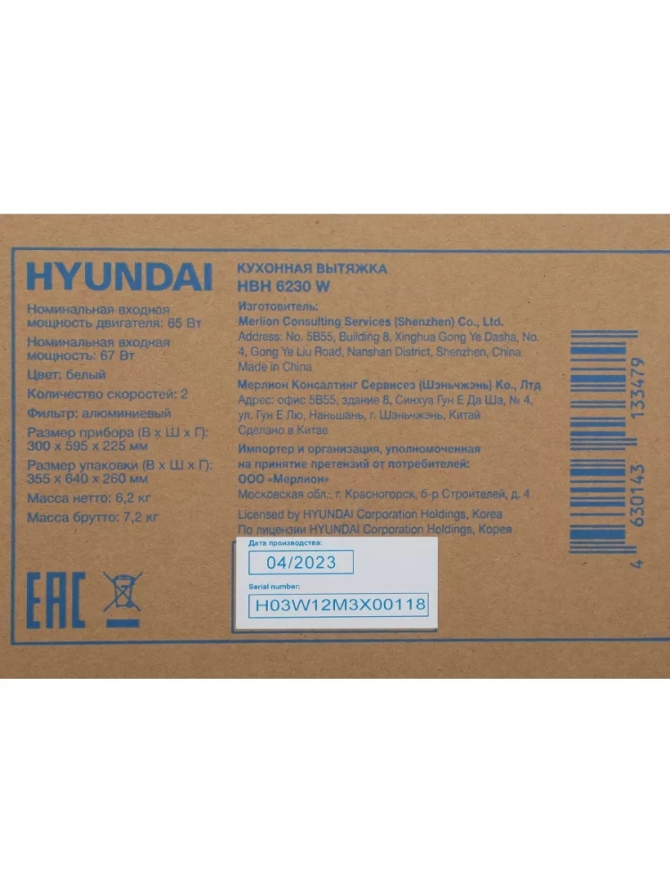 Вытяжка встраиваемая HBH 6230 W белый