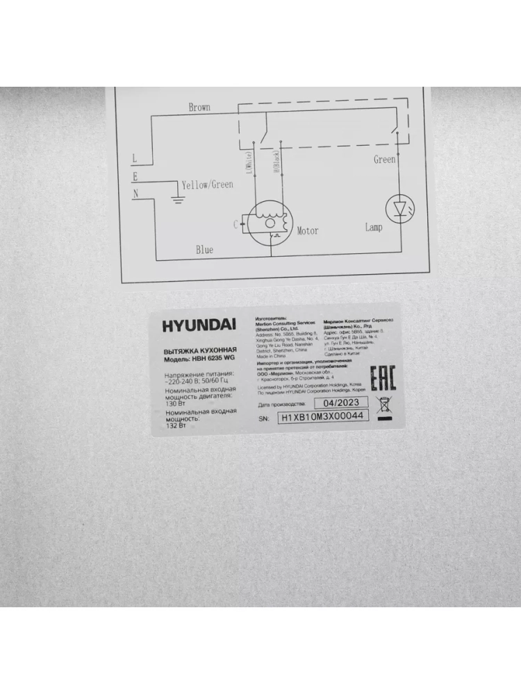 Вытяжка встраиваемая Hyundai HBH 6235 WG белый управление: кнопочное (1 мотор)