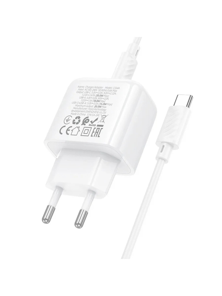 Сетевое зарядное устройство (СЗУ) HOCO CS54A — это универсальное и удобное устройство, предназначенное для зарядки различных электронных устройств. Оно оснащено одним портом USB 3.0 и одним портом Type-C с поддержкой технологии Power Delivery (PD), что обеспечивает быструю и эффективную зарядку.