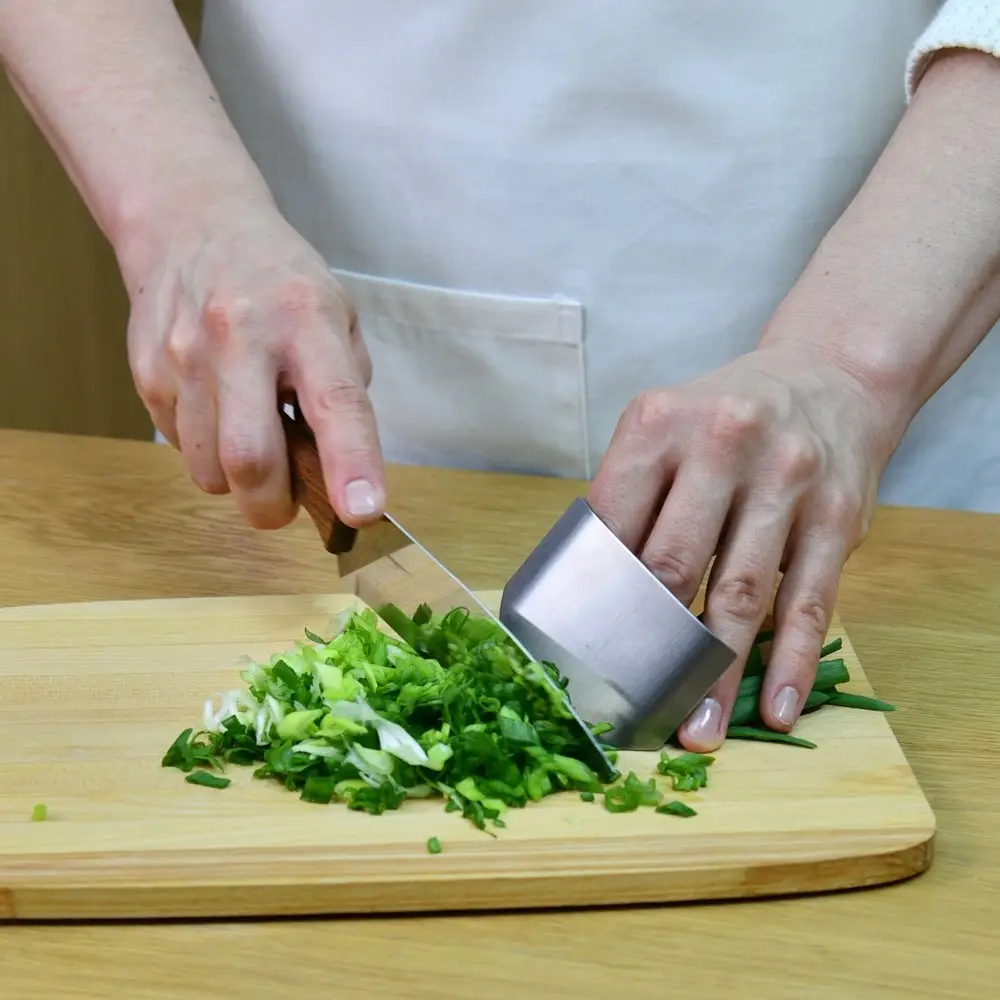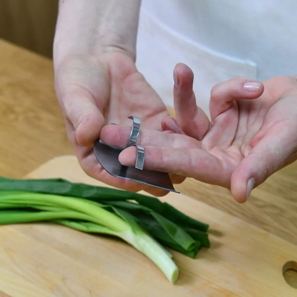 Как нарезать продукты и 100% не порезаться? Используйте защиту для пальцев и предотвратите порезы и ссадины от ножа. Приготовление еды с этим приспособлением станет абсолютно безопасным. Наденьте кольца на фаланги пальцев и прижмите изделие к доске. После этого приступайте к нарезанию или шинковке продуктов. Приспособление имеет компактные размеры, может храниться в любом ящичке на кухне. Изготовлено из нержавеющей стали, кольца-держатели регулируются под любой размер пальцев.