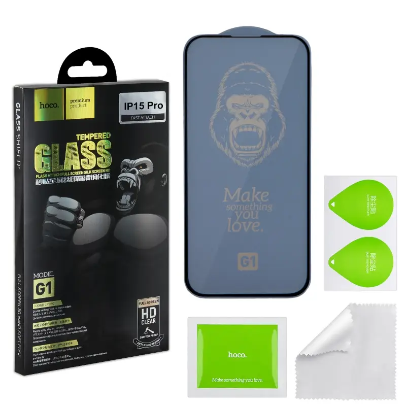 Защитное стекло для iPhone 15 Pro Full Screen G1 HOCO черное