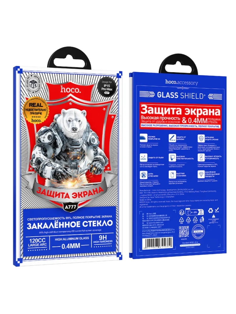 Противоударное оригинальное защитное стекло Hoco A777 для Apple iPhone 15Pro Max- лучшее качество, проверенное временем!
