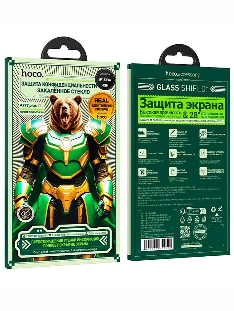Защитное стекло HOCO A777 Plus — это современное решение для защиты экрана вашего телефона, сочетающее в себе передовые технологии защиты и удобство использования. Антишпионская функция обеспечивает конфиденциальность при использовании устройства в общественных местах, а высокое качество материалов гарантирует длительный срок службы.
