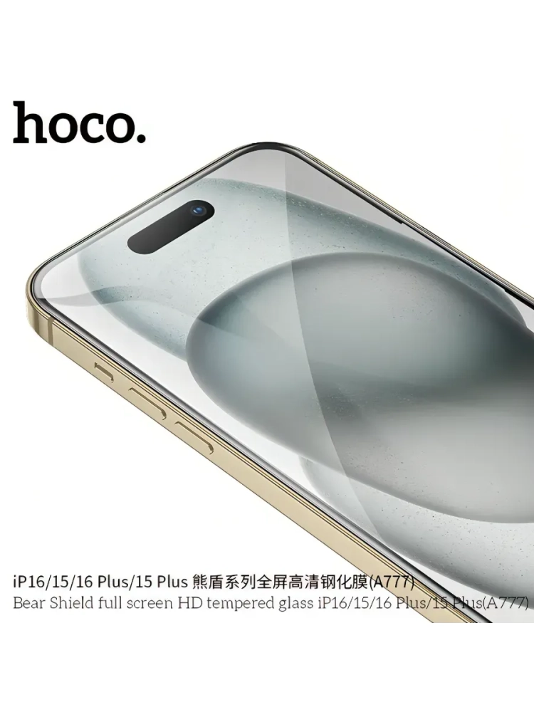Противоударное оригинальное защитное стекло Hoco A777 для Apple iPhone 15/16 - лучшее качество, проверенное временем!