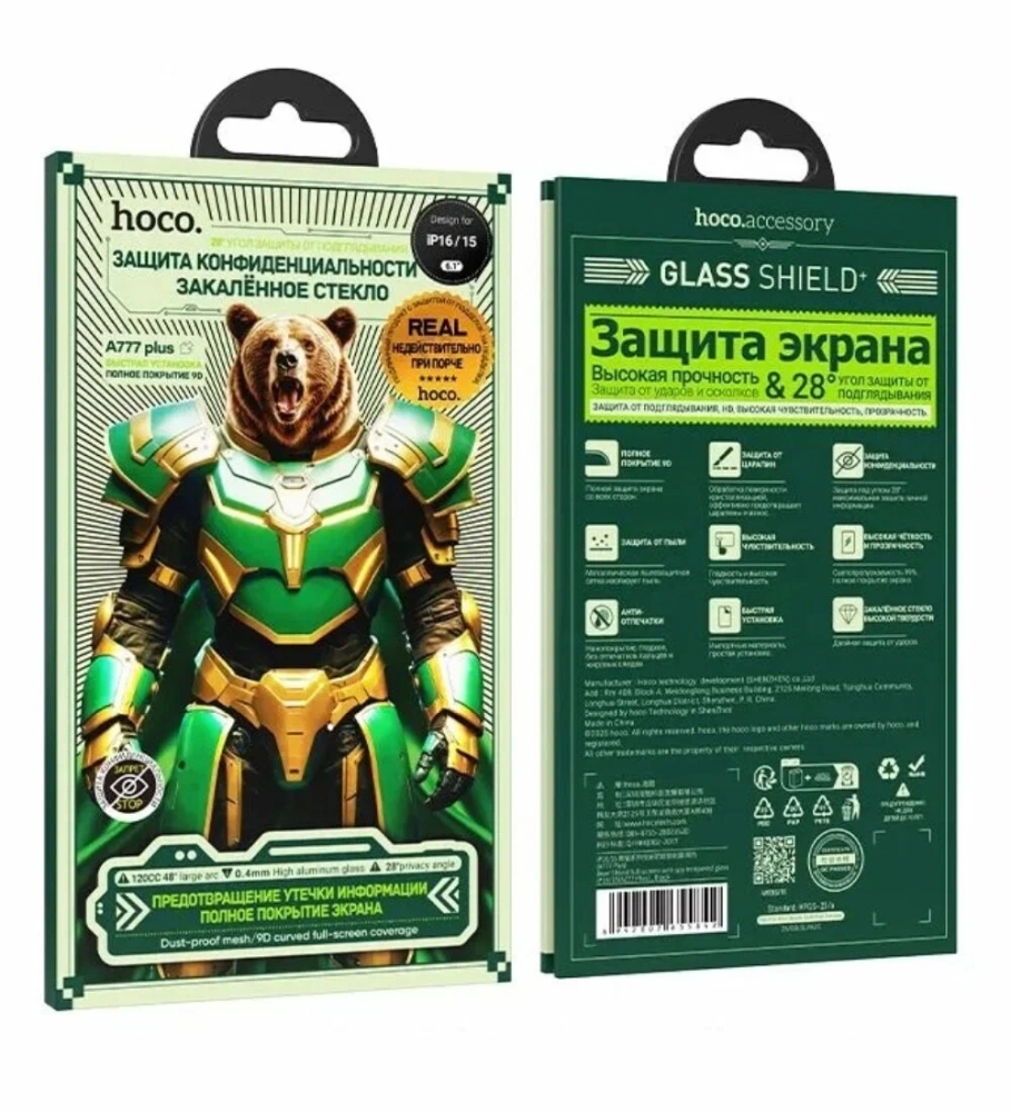 Защитное стекло HOCO A777 Plus — это современное решение для защиты экрана вашего телефона, сочетающее в себе передовые технологии защиты и удобство использования. Антишпионская функция обеспечивает конфиденциальность при использовании устройства в общественных местах, а высокое качество материалов гарантирует длительный срок службы.