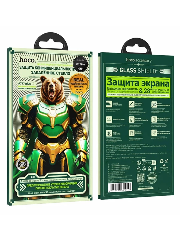 Защитное стекло HOCO A777 Plus — это современное решение для защиты экрана вашего телефона, сочетающее в себе передовые технологии защиты и удобство использования. Антишпионская функция обеспечивает конфиденциальность при использовании устройства в общественных местах, а высокое качество материалов гарантирует длительный срок службы.