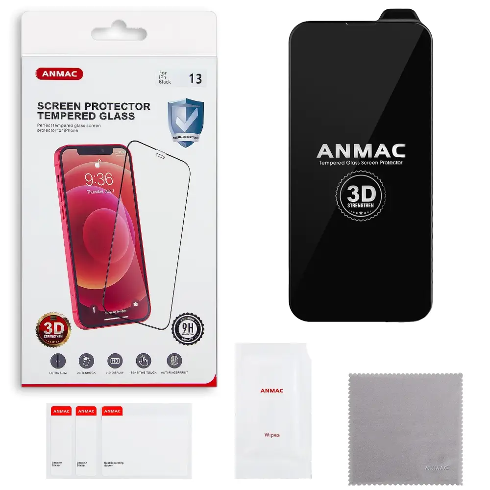 Защитное стекло iPh 13/13 Pro/14/16e 3D ANMAC усиленное Арт. 1137226