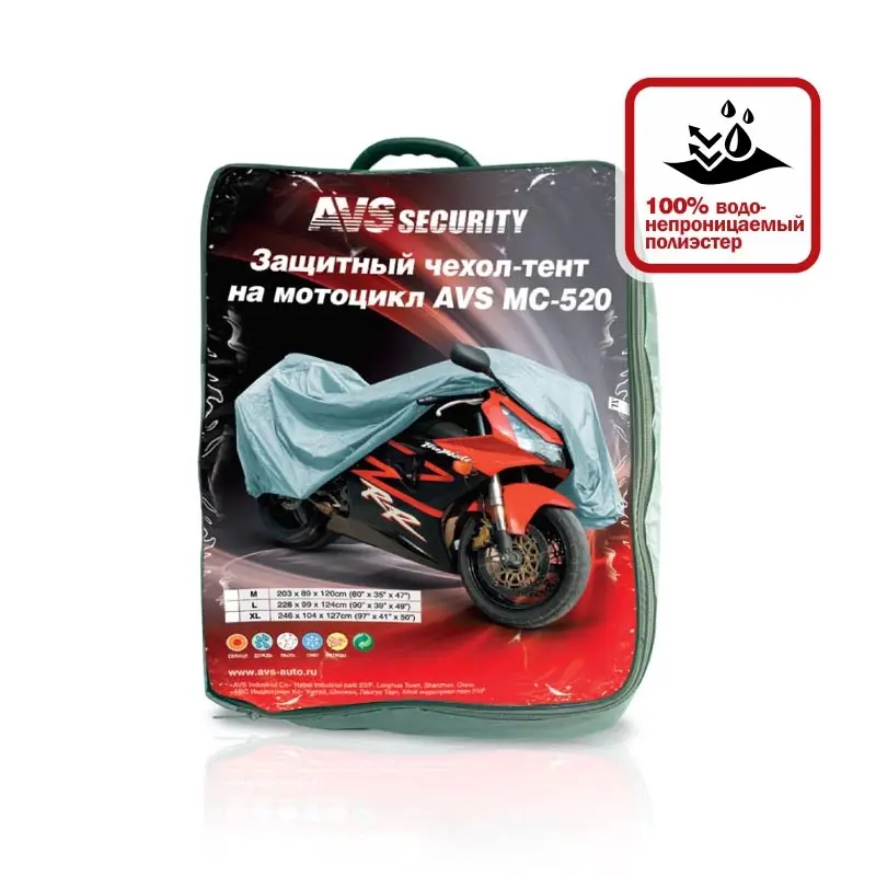 Защитный чехол-тент на мотоцикл AVS МС-520 "2ХL" 264х104х130см (водонепроницаемый)