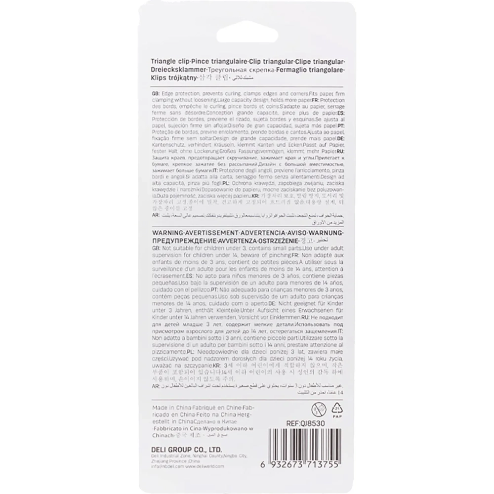 Зажимы для бумаг Deli EQJ8530, 4шт/уп,4цв,32мм, до 40л,угл, пласт