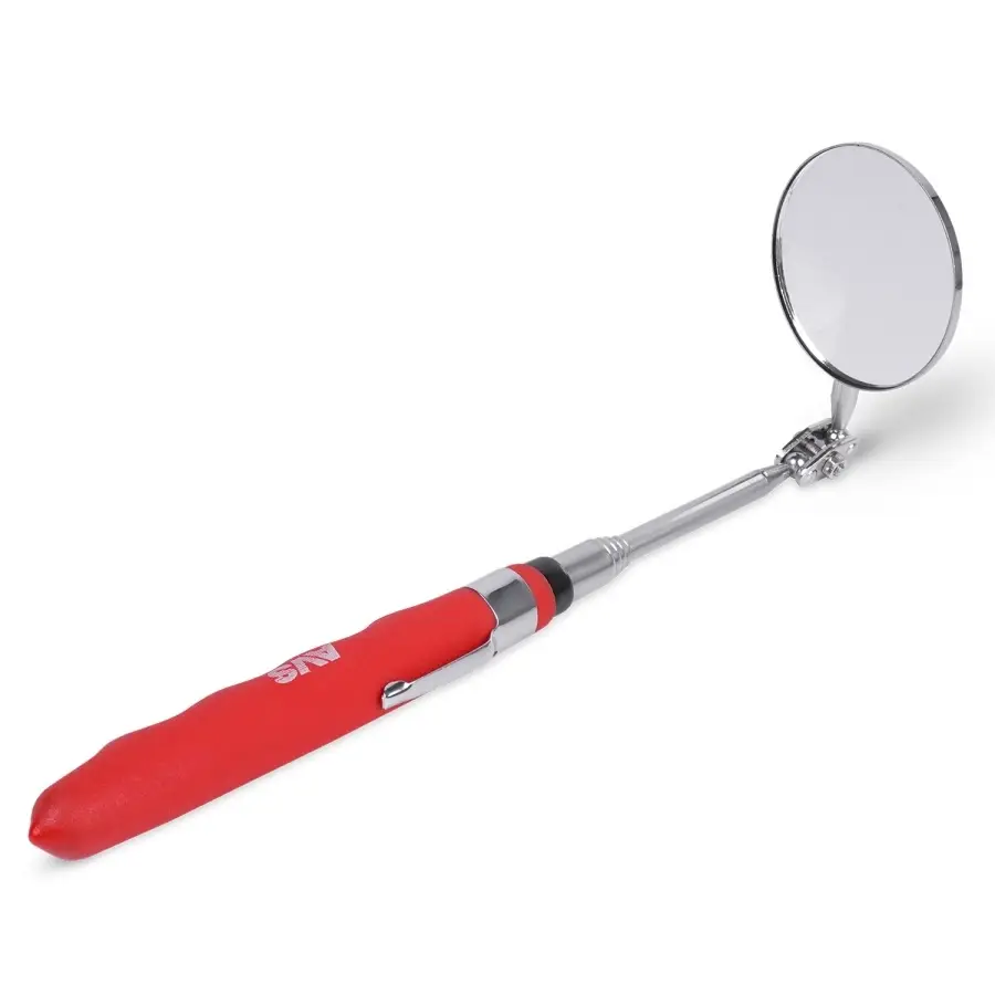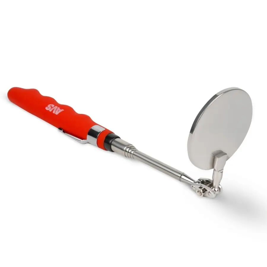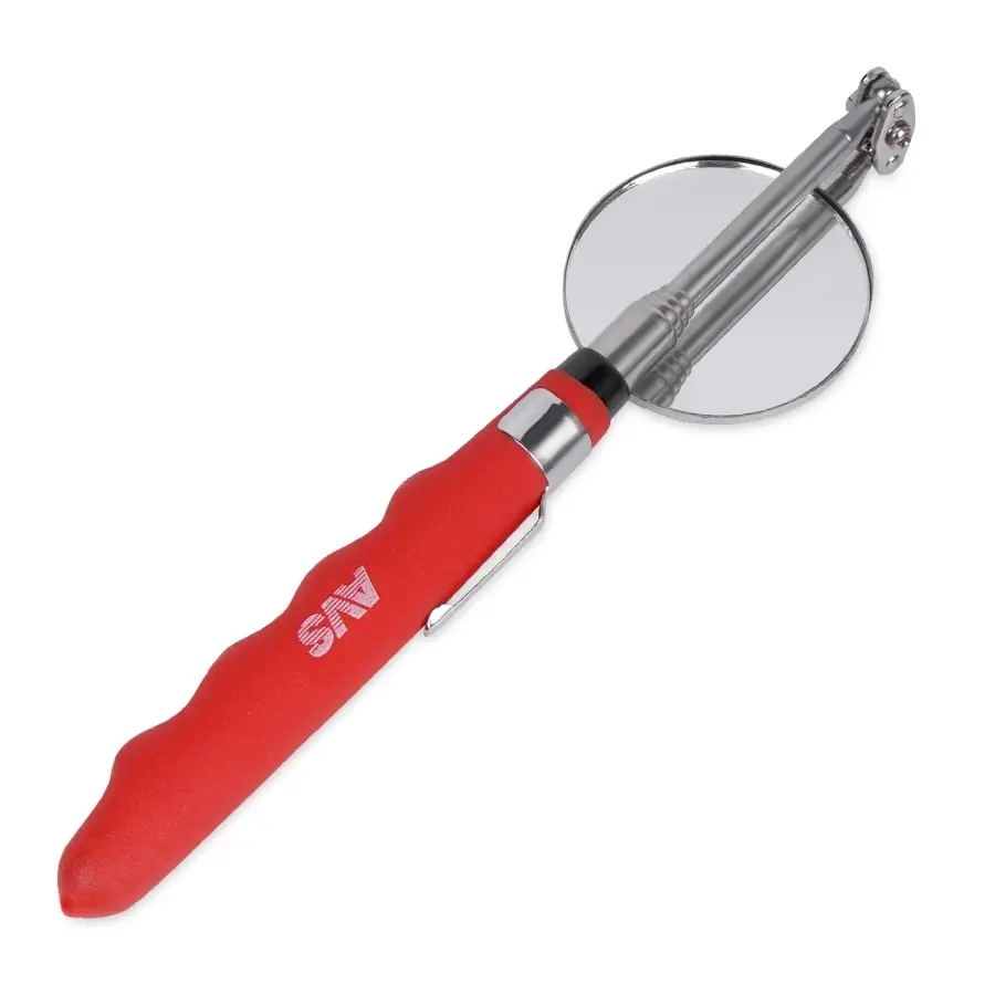 Применяется для осмотра, диагностики и работ в условиях ограниченного пространства. Шарнир позволяет изменять угол зеркала. Телескопическая конструкция обеспечивает доступ в труднодоступные, заглубленные места и сохраняет компактные размеры в сложенном виде. Оснащено держателем-клипсой для крепления в кармане или на ремне.