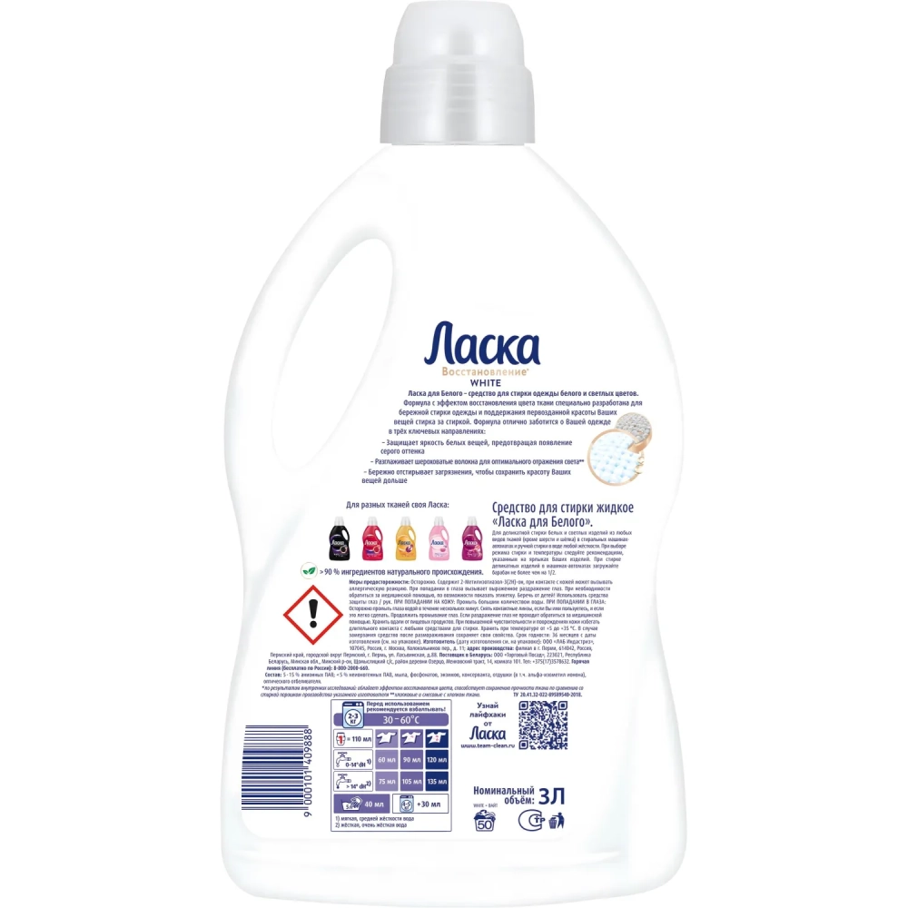Жидкое средство для стирки Ласка для белого 3л