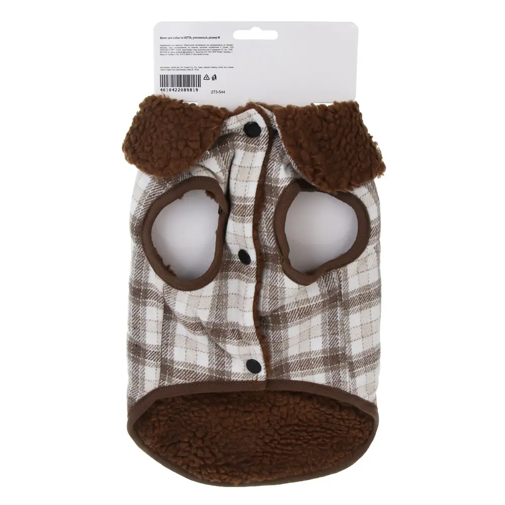Утеплённый жилет для собак VETTA — идеальное решение для прогулок в прохладную погоду. Изготовленный из прочных и мягких материалов, он надежно сохраняет тепло, обеспечивая питомцу комфорт и свободу движений. Легкая, но плотная ткань защищает от ветра и влаги, а мягкая подкладка создаёт приятное ощущение уюта. Благодаря удобной застёжке на клепках жилет быстро надевается и снимается, не доставляя неудобств ни вам, ни вашему любимцу. Модель рассчитана на собак с обхватом груди 44 см, обхватом шеи 37 см и длиной спины 31 см — оптимальный выбор для маленьких пород. Современный дизайн и аккуратный крой подчёркивают стиль питомца, делая каждую прогулку не только комфортной, но и модной. Этот жилет — надёжная защита от холода и верный спутник для активных прогулок в любое время года.