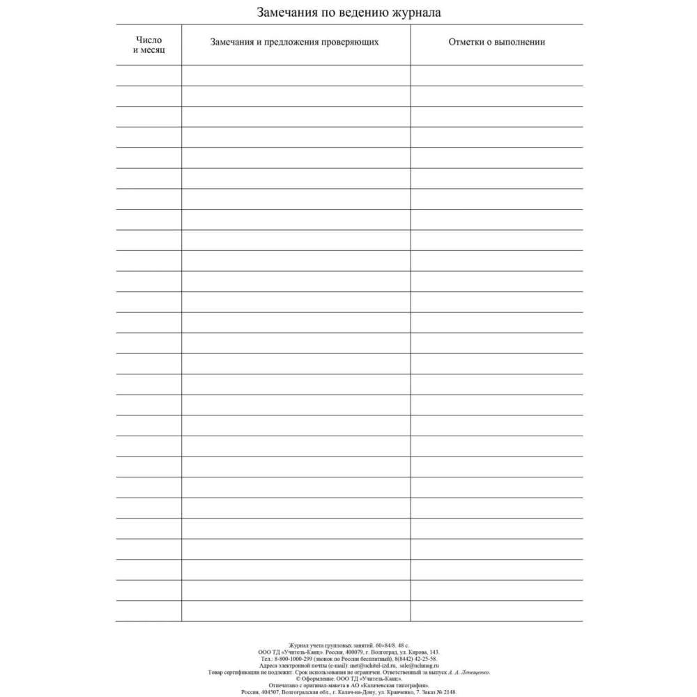 Журнал контроля и учета Груп.занят А4,обл.офсет,блок писчая, КЖ-197 2шт/уп
