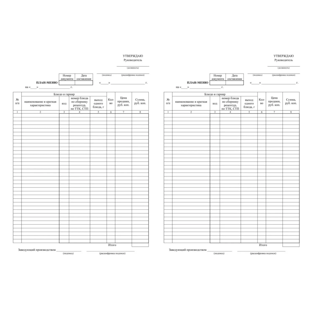 Журнал план-меню Форма ОП-2 А4, офсет блок 60г,облож.160г, 24стр. КЖ-784/1