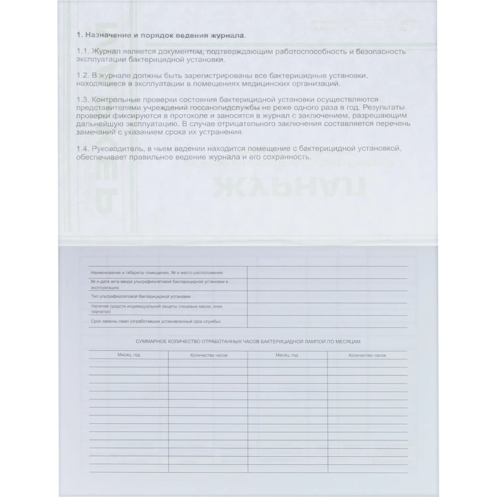 Журнал регистр.и контр. работы бактериц.установки