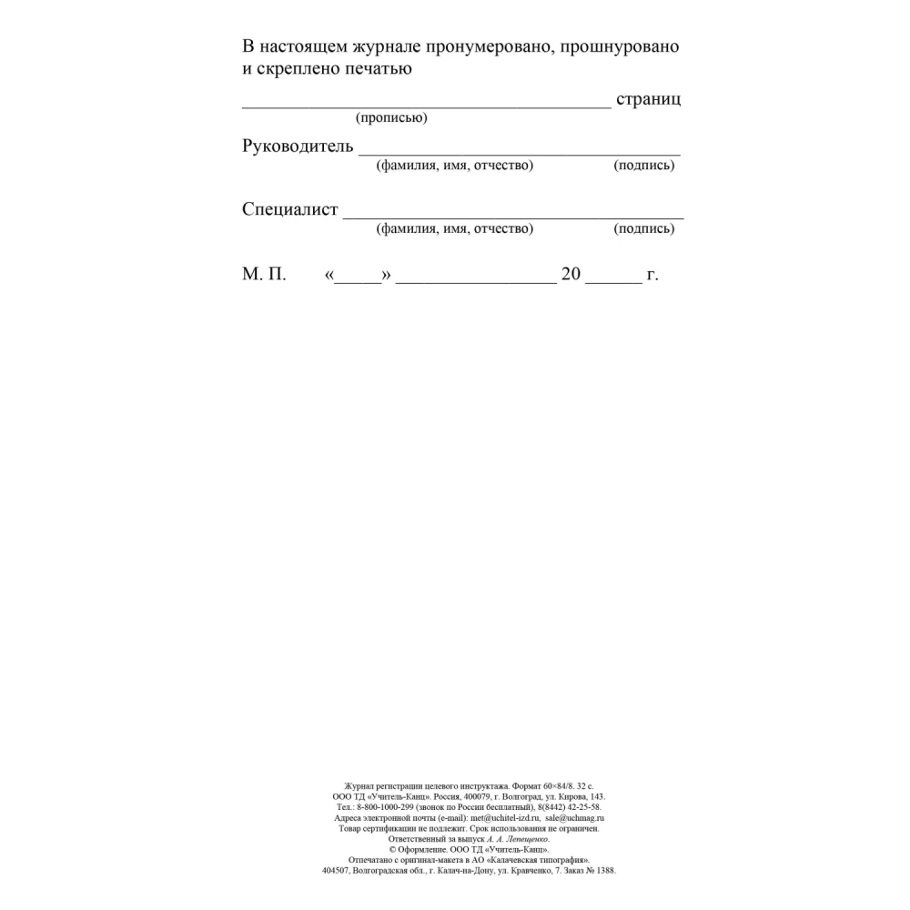 Журнал регистрации целевого инструктажа по охране труда КЖ-1638