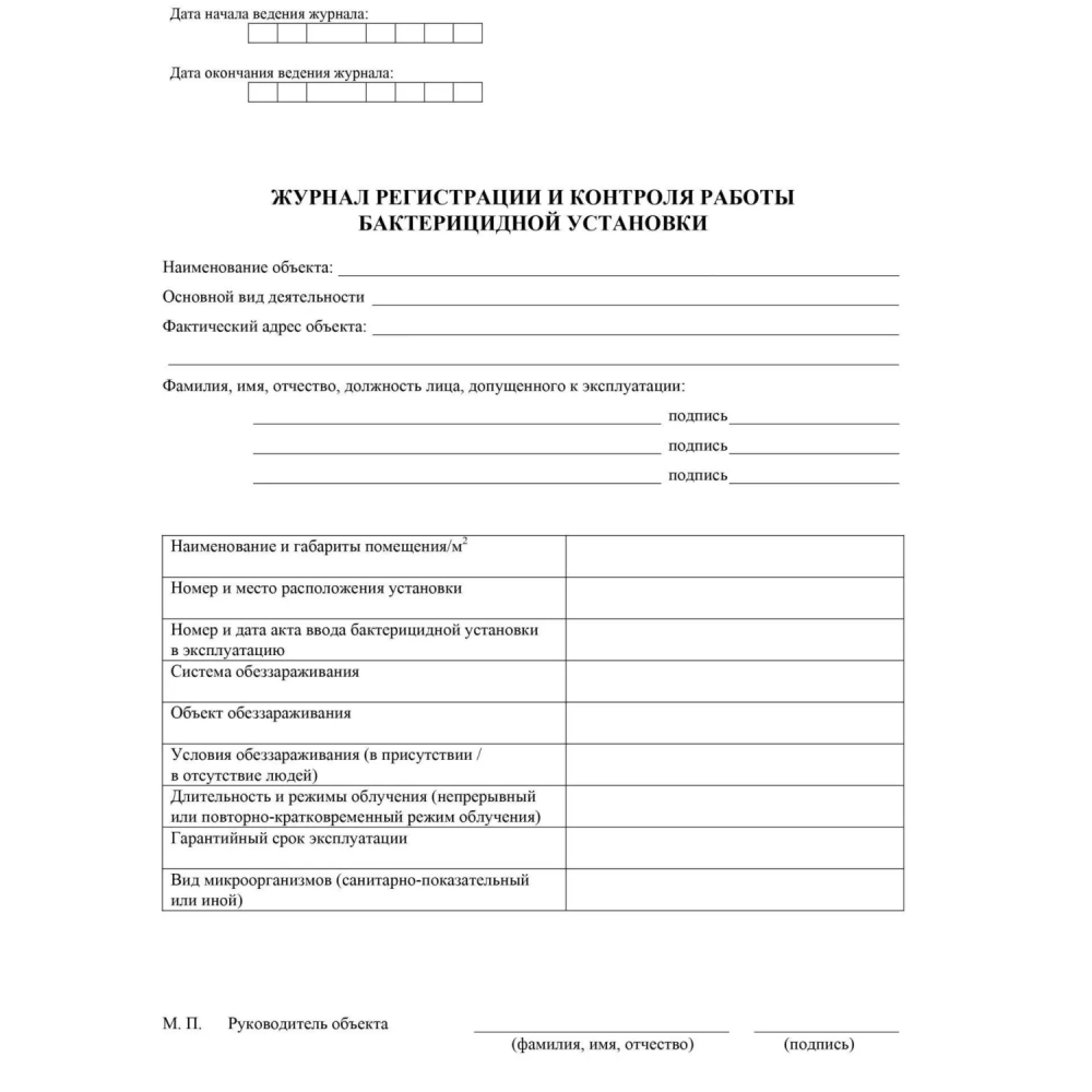 Журнал регистрации и контроля работы бактериц.установки, КЖ-1473