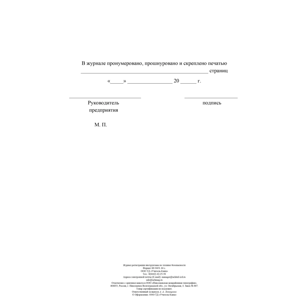 Журнал регистрации инструктажа по технике безопасности КЖ-1564