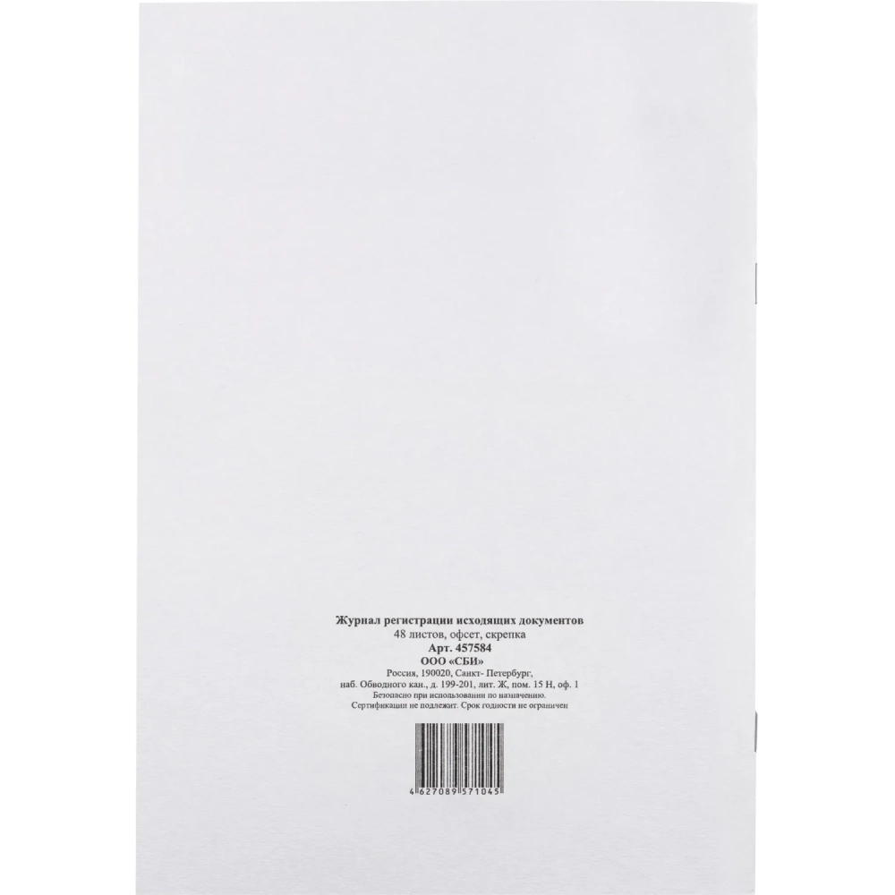 Журнал регистрации исходящих документов,офсет,скрепка48 л