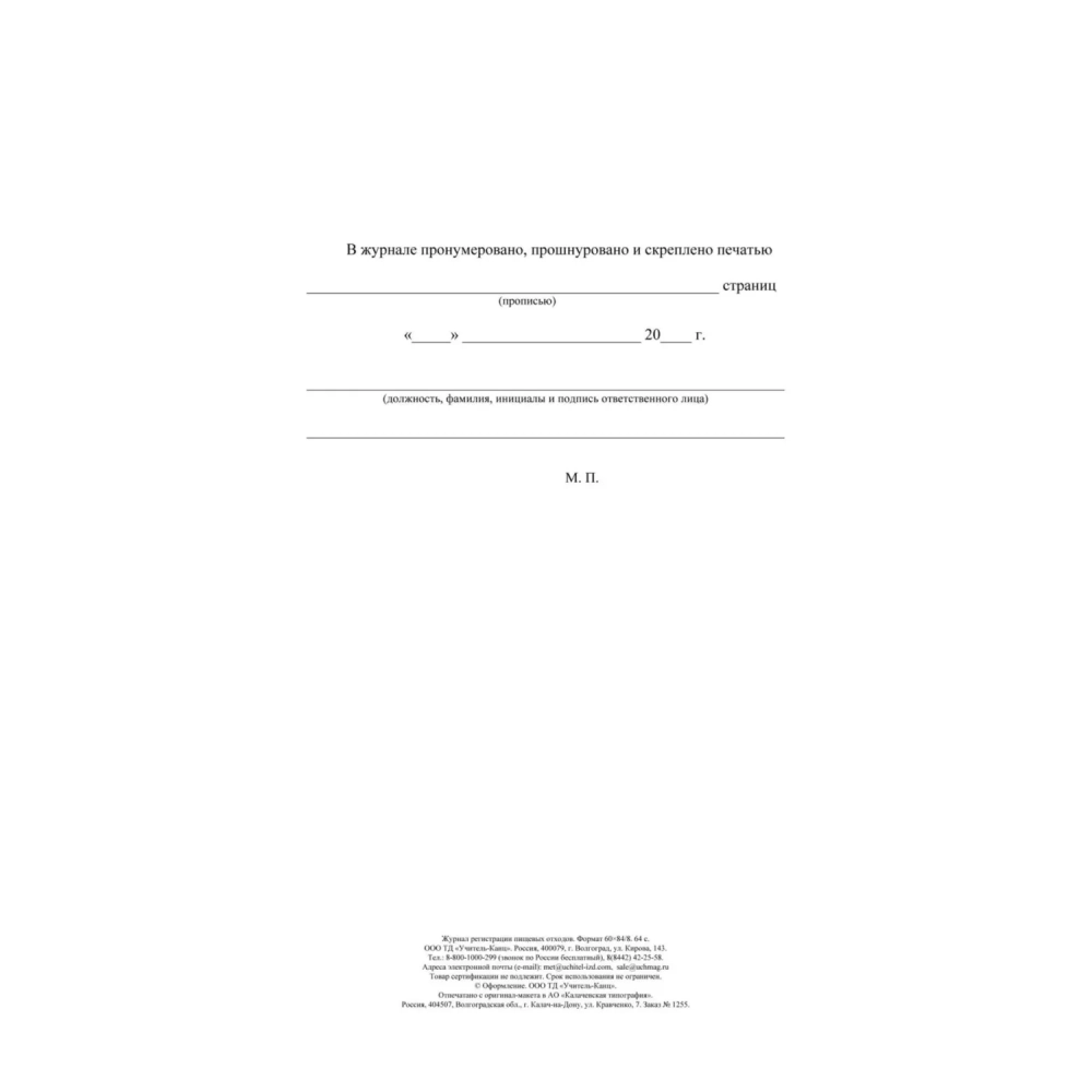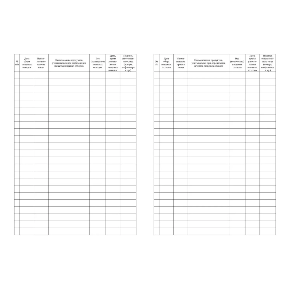 Журнал регистрации пищевых отходов А4 офсет блок 60г/обл.160г 64стр КЖ-7452