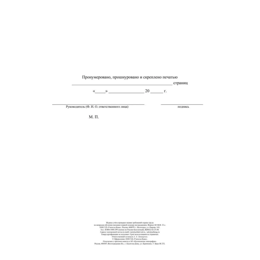 Журнал учета пров зн трв.охран тр вопр.обуч.ок перв.пом пост2 шт/уп КЖ-843а