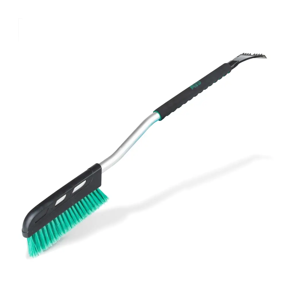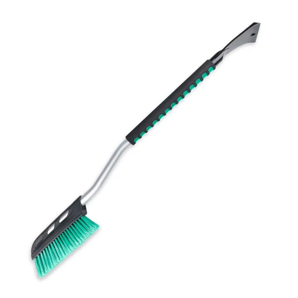 Щетка - сметка с распушенной щетиной для очистки снега, с удобной изогнутой ручкой для более тщательной и быстрой очистки, с мягким спонжем для комфорта рук и со скребком с зубьями для удаления обледенения.