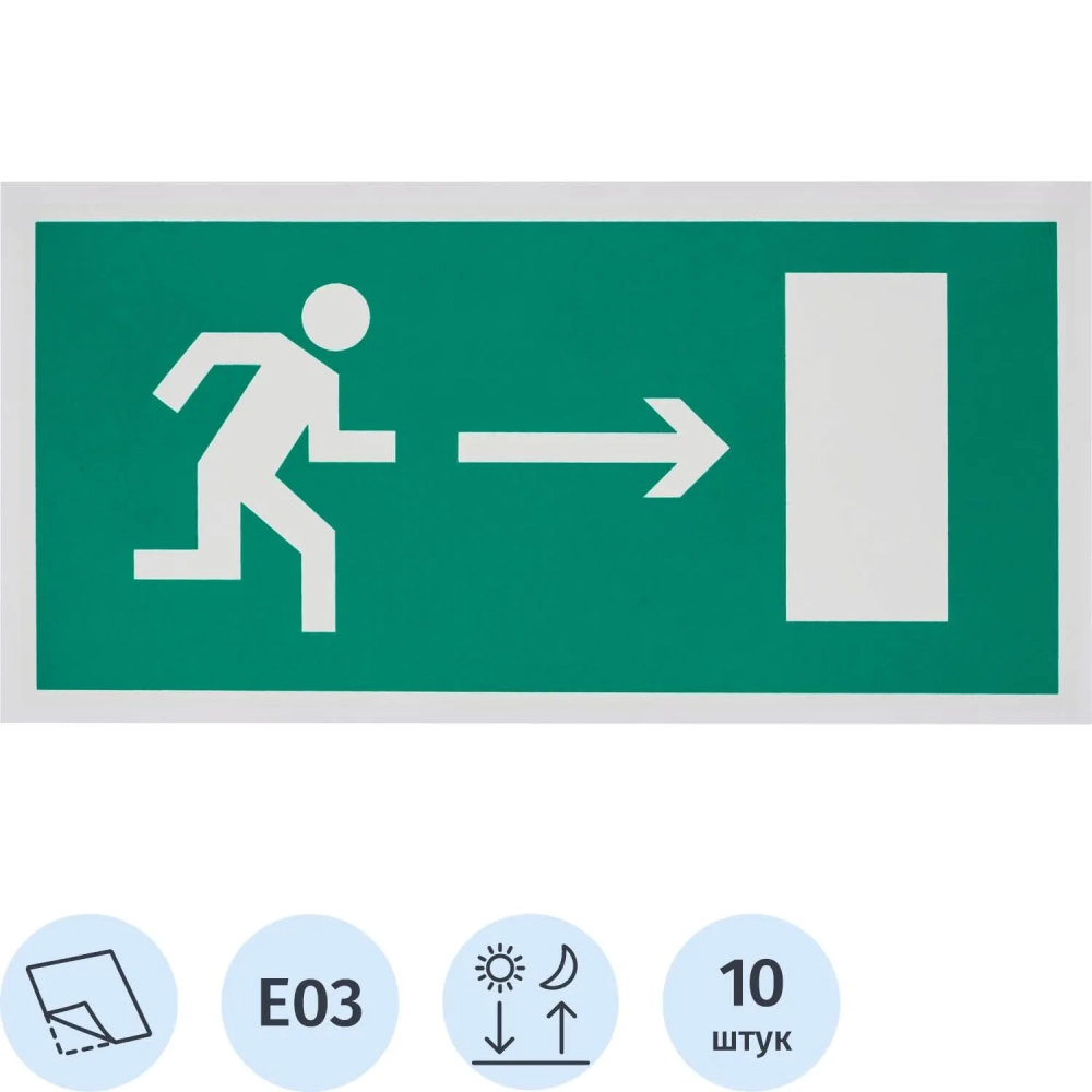 Знак безопасности E03 Напр-е к эв.вых.направо(плёнка,ф/л,300х150)уп.10шт