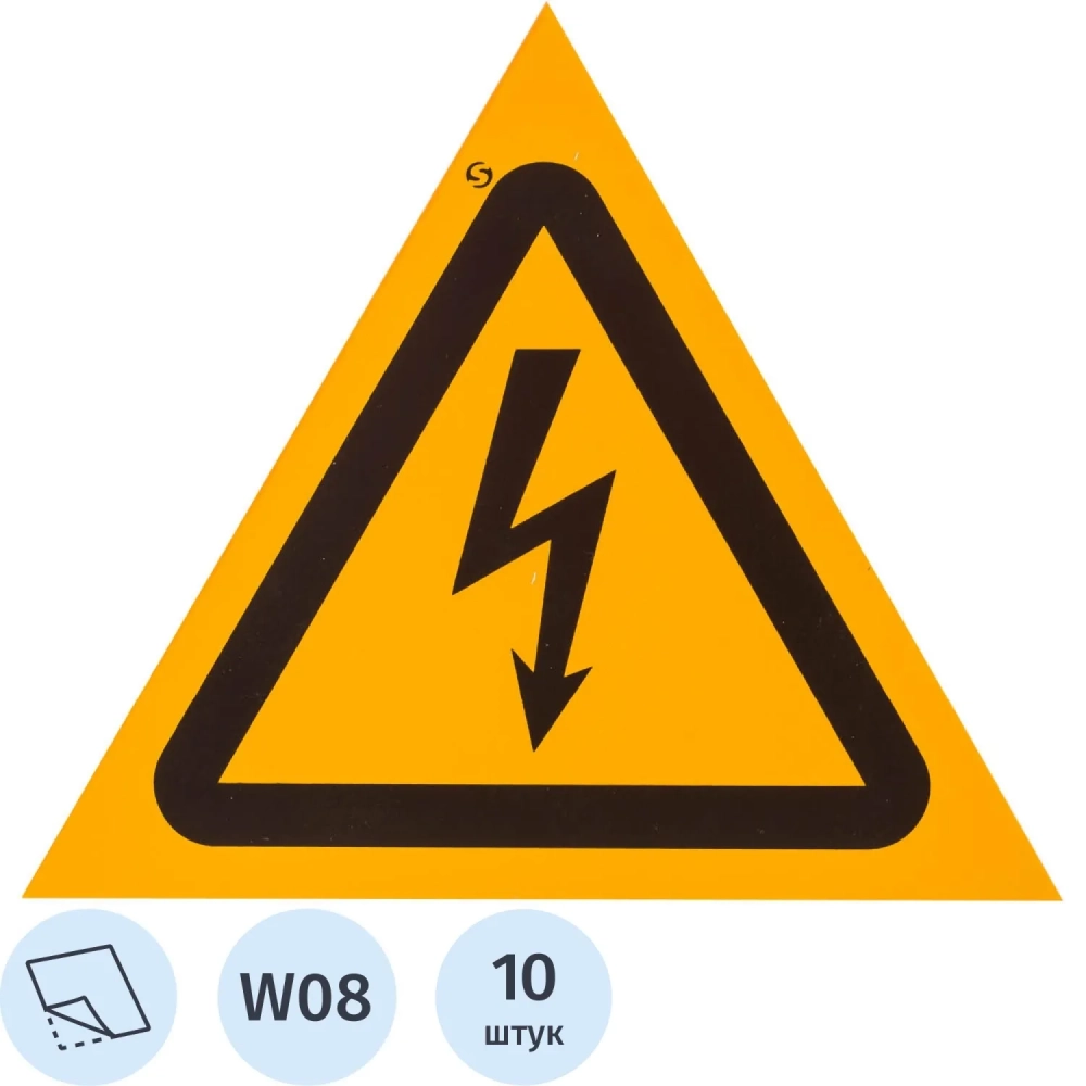 Знак безопасности W08 Опасность поражения эл.током, пленка 200х200 10шт/уп