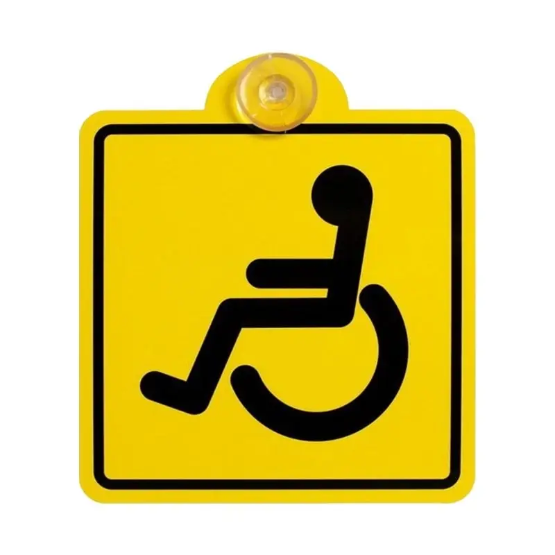 Знак на присоске "Инвалид" крепится на внутреннюю сторону стекла автомобиля.