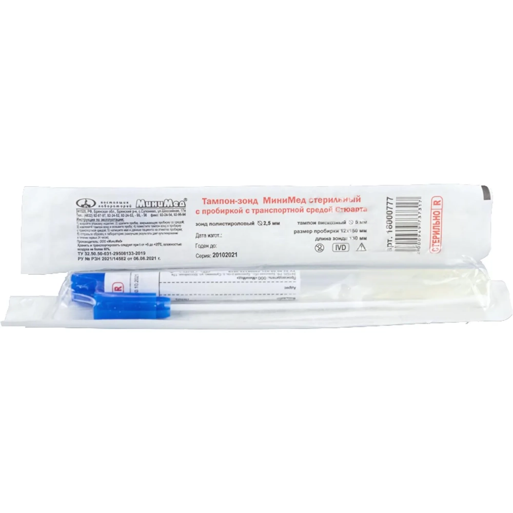Зонд тампон стерил. с пробиркой с тр. средой Стюарта, инд.уп100шт 18000777
