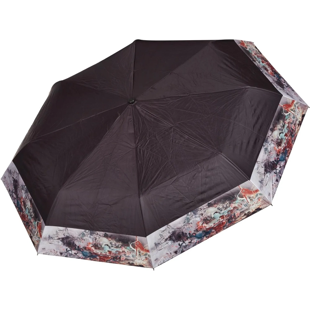 Зонт женский, полный автомат, черный с кантом, HD-U07