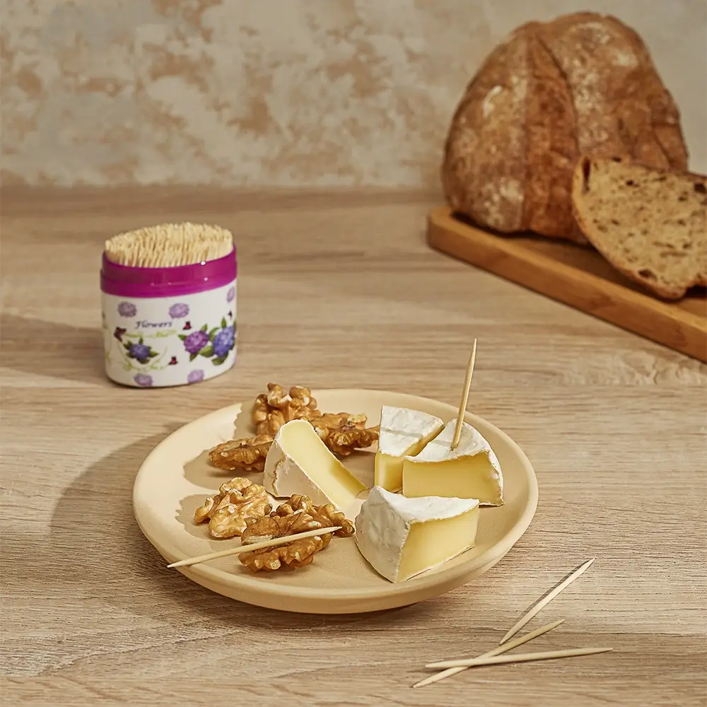 Бамбуковые зубочистки Vetta — экологически чистые и гипоаллергенные изделия, предназначенные для ухода за ротовой полостью. Острые, прочные и тонкие изделия помогут быстро привести себя в порядок после приема пищи и радовать окружающих лучезарной улыбкой. Дополнительно аксессуары используются для приготовления мини-закусок: рулетов и канапе из фруктов, овощей, сыра и мяса. Купить бамбуковые зубочистки Vetta можно в пластиковой упаковке вместительностью 300 штук.