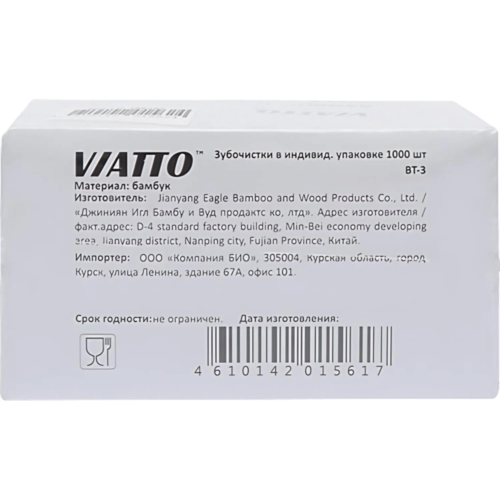 Зубочистки в инд. упаковке (бумага) бамбук BT-3 1000шт/уп